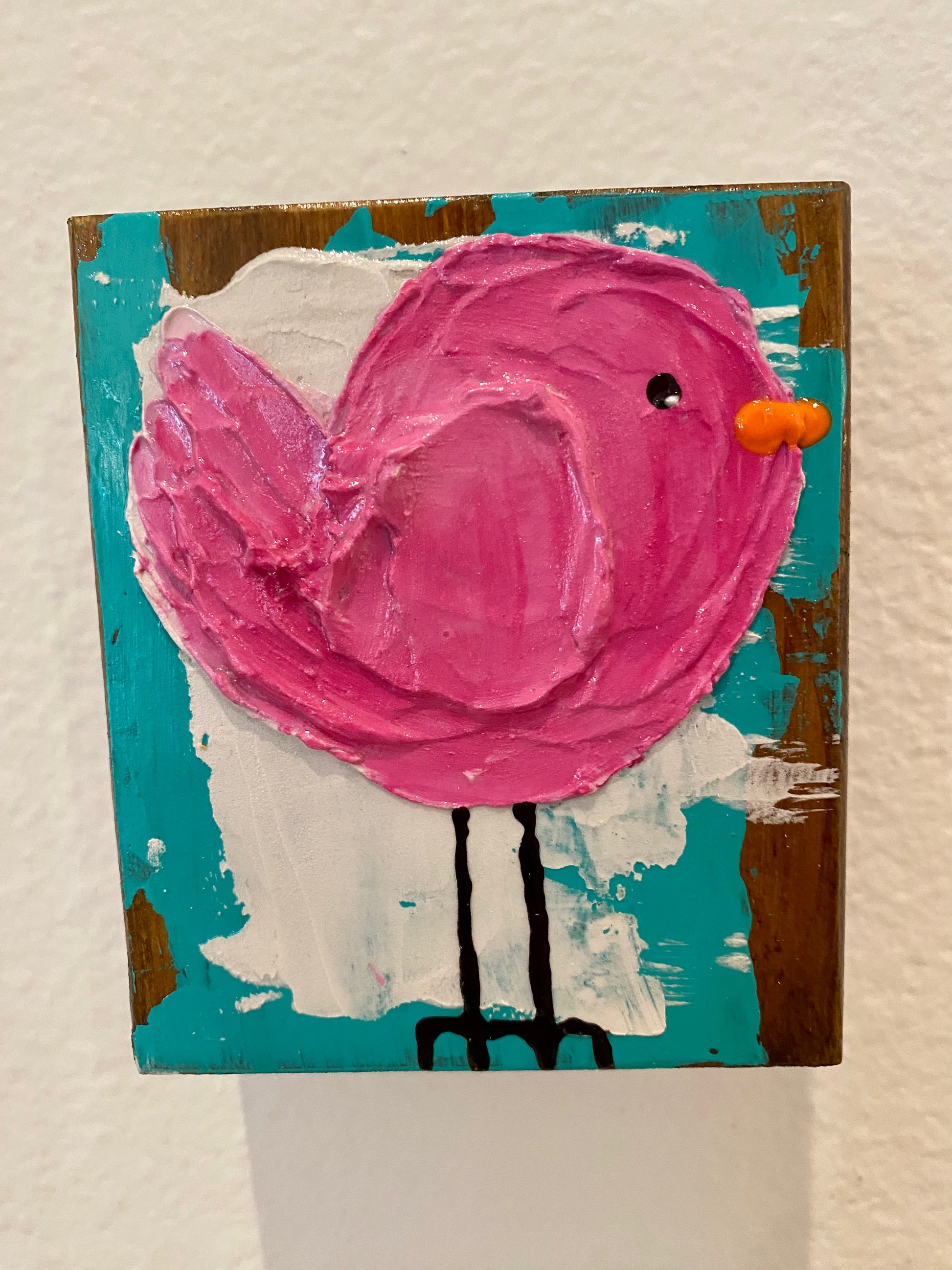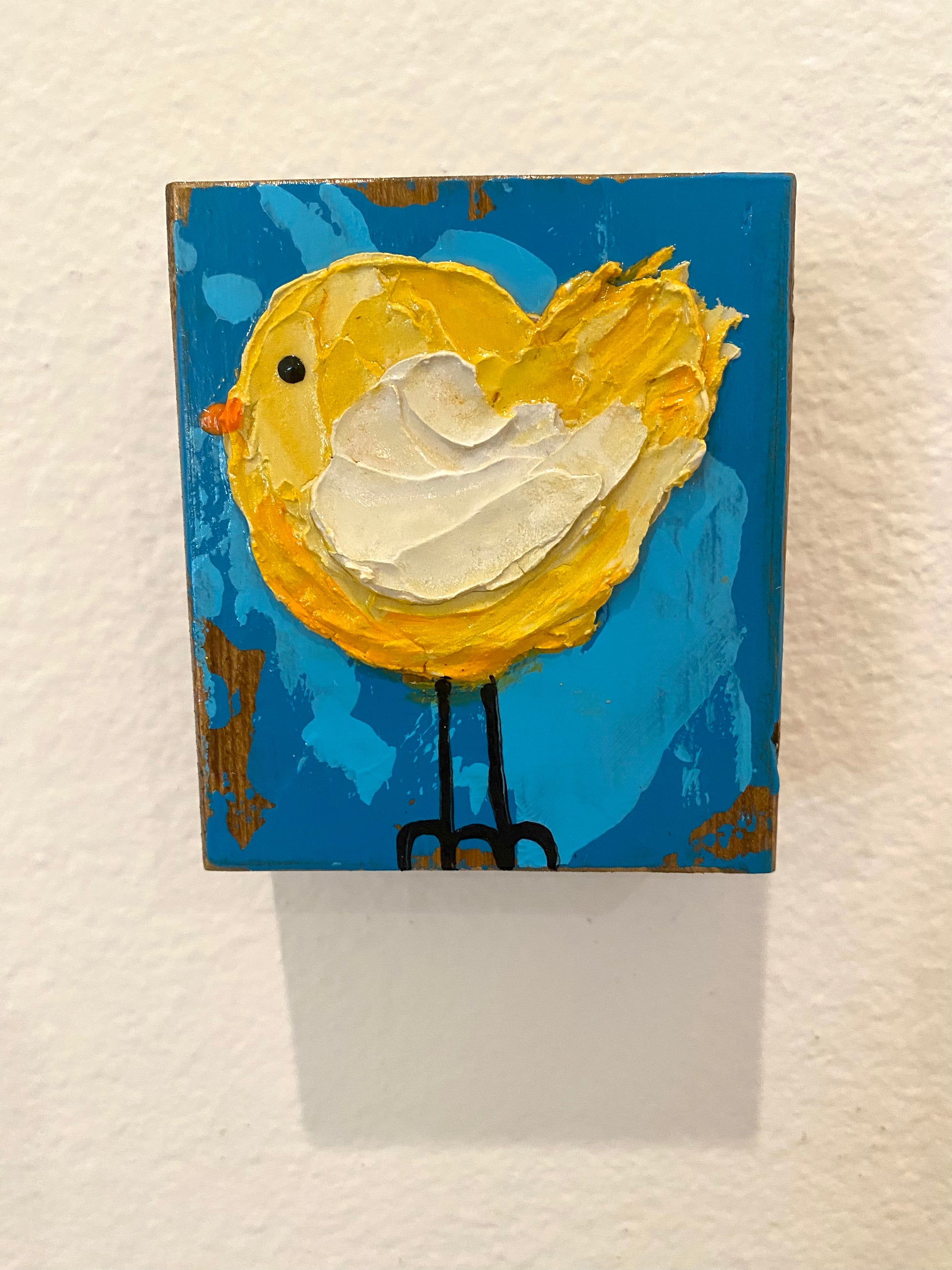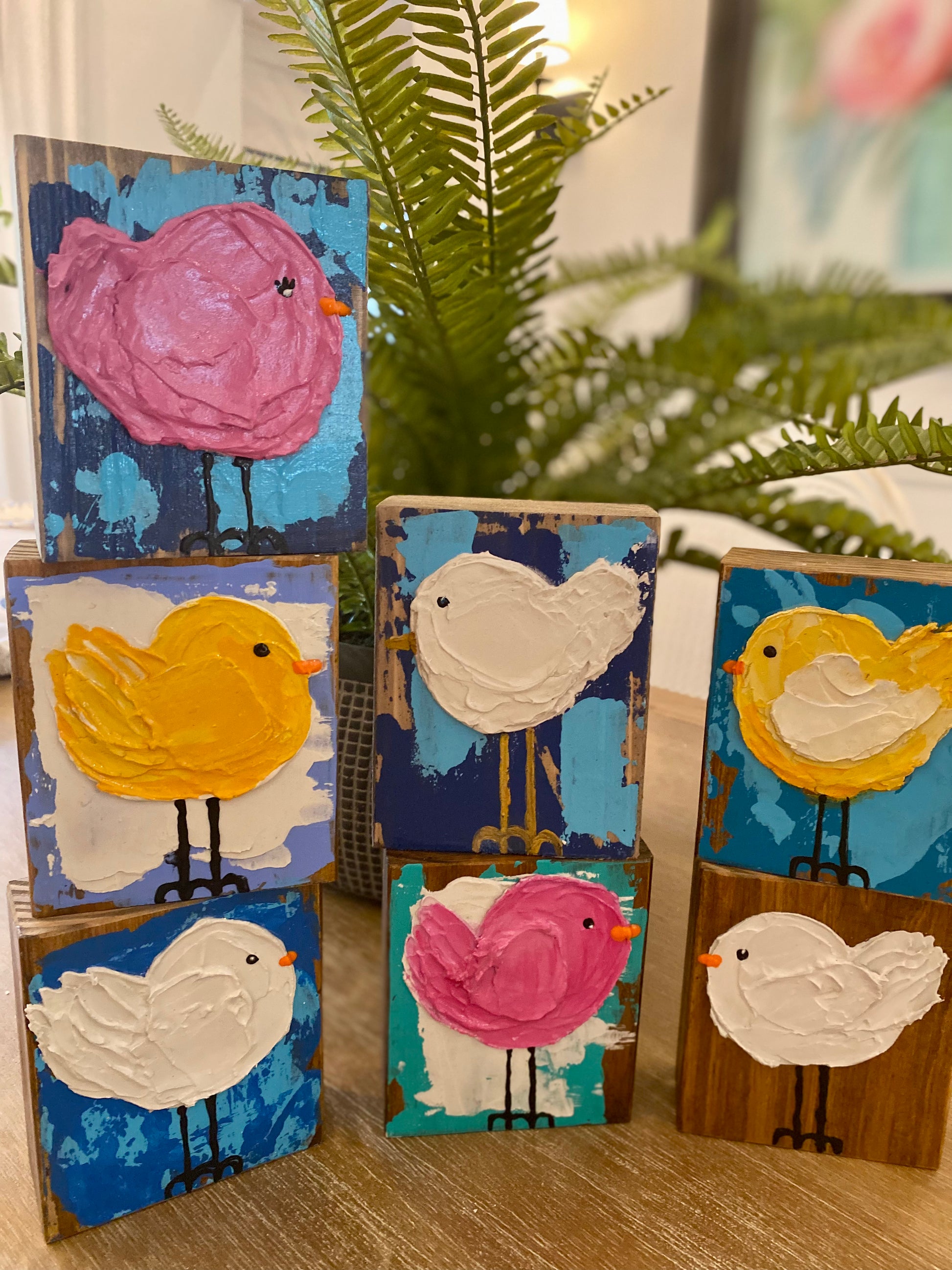 These sweet little peeps are sure to brighten the day. These make a great gift or a card substitute. Write a message on the back. They can sit on a shelf, in a tray, hang on the wall. All original and one of a kind.